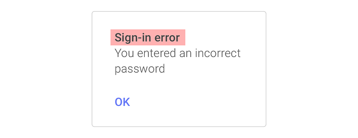 ‘Tente novamente’ é uma boa opção. Mas isso não é tudo que precisamos. Precisamos dar à pessoa usuária uma opção para o caso de ela ter esquecido a senha, pois se ela esqueceu a senha e sua única opção for “tentar novamente”, é muito provável que ela fique frustrada.